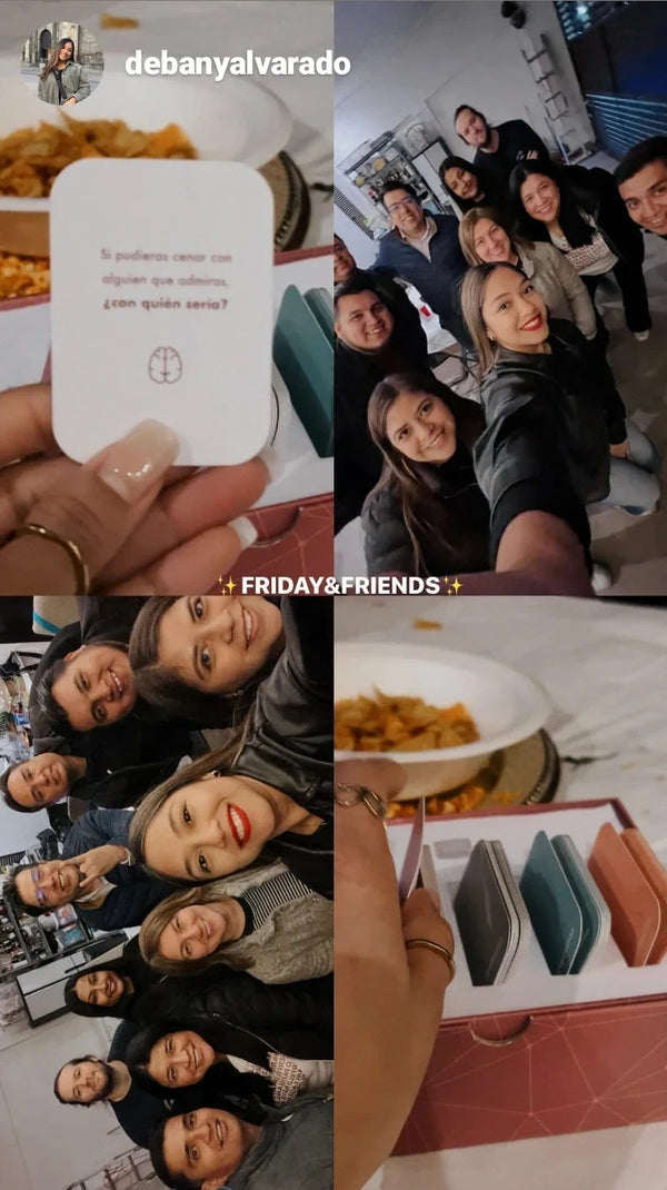 Excelente juego. Preguntas muy interesantes que ayudan a conocerse mejor entre todos tus seres queridos, desde amigos, pareja y familiares. Lo compramos para usarlo con la familia en navidad y la verdad conectamos mucho entre los 4 hermanos que somos desde que vivo acá en México con mi nueva familia. De las preguntas más simples a las más complejas, todas sacan temas que quizá no salen o surgen en una conversación random y terminas conociendo mucho mejor a la gente con la que juegas, así como abriéndose uno mismo con cosas que en una charla habitual a veces es raro que salgan al ser preguntas tan concretas y preparadas especialmente para conocerse mejor. Resulta muy entretenido y te sientes más unido a tus seres queridos. Lo recomiendo totalmente